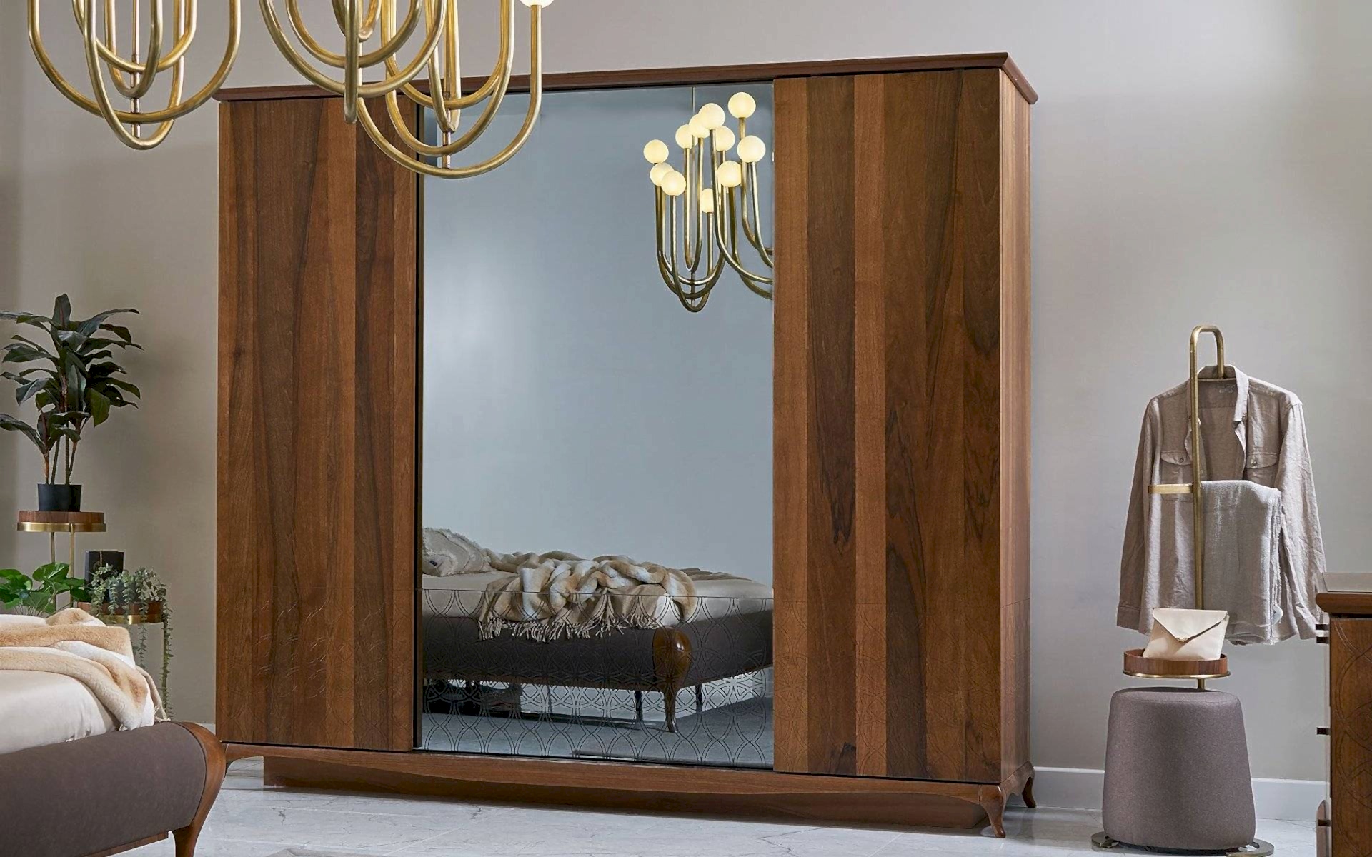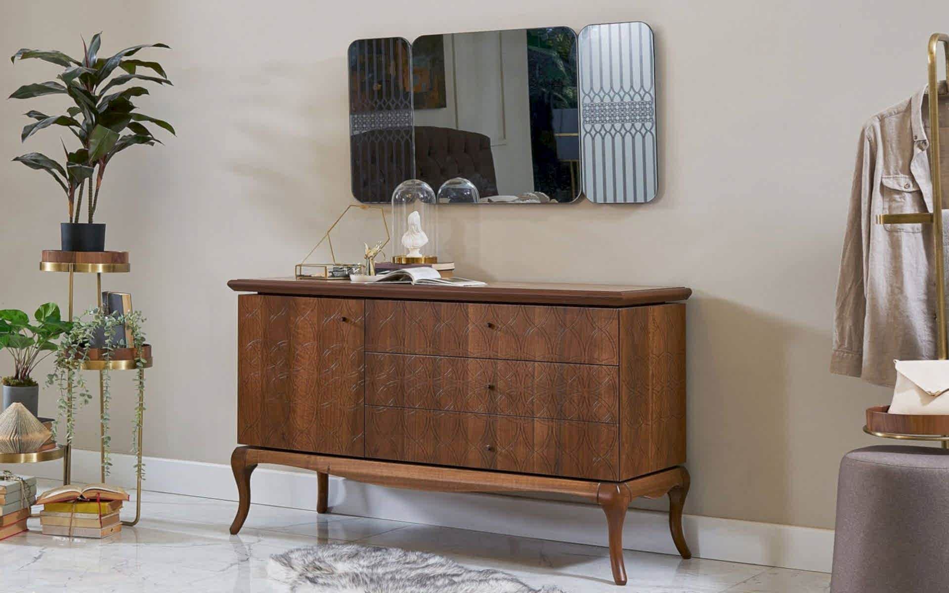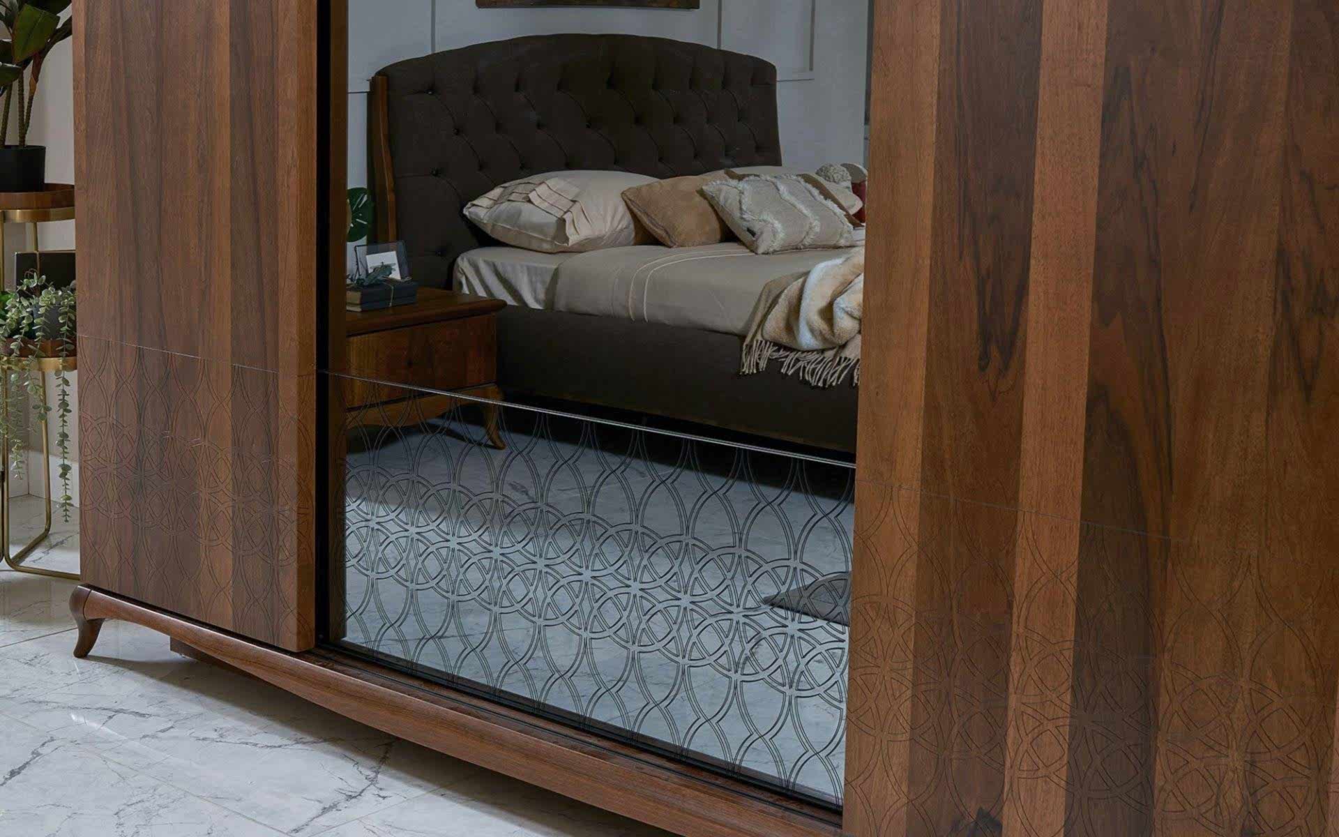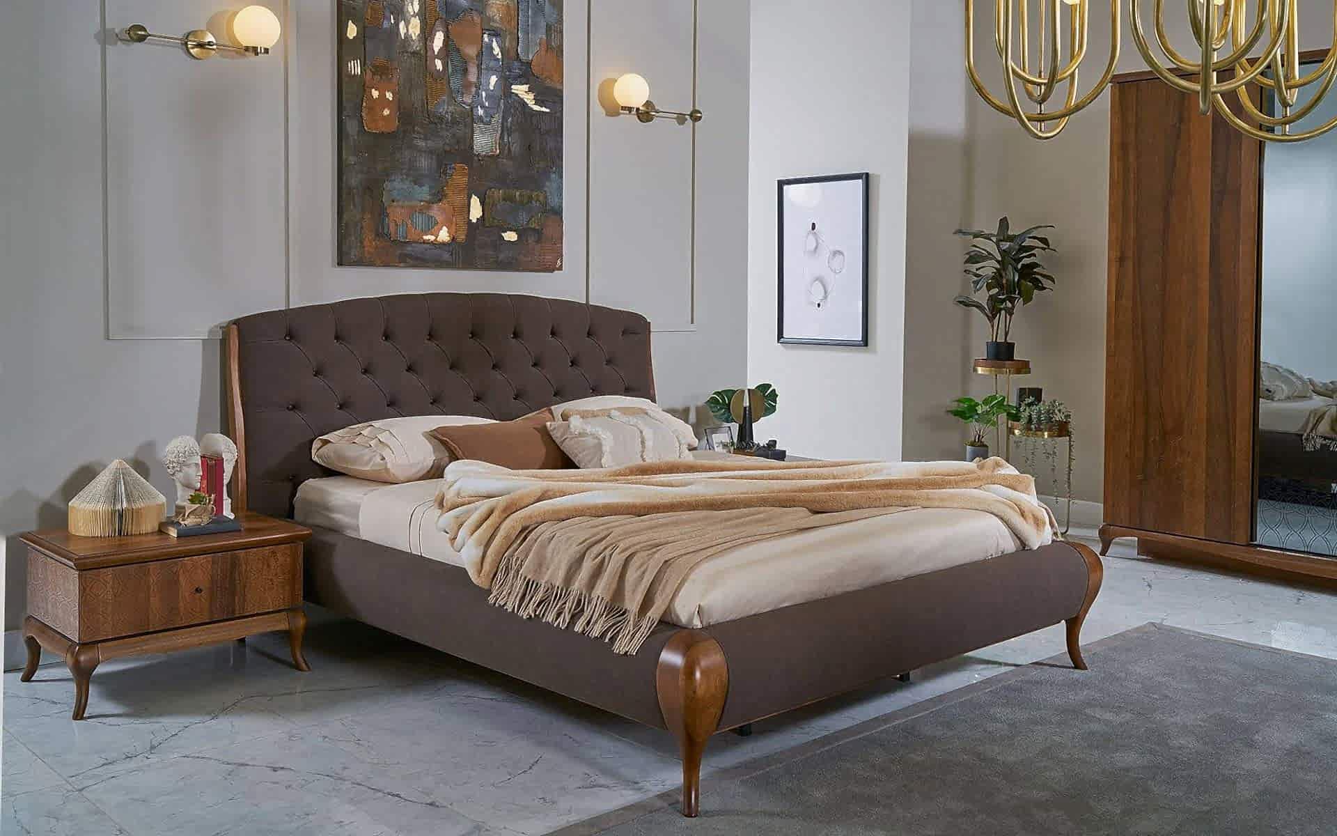 Art Ceviz Yatak Odası, doğal ceviz ağacının sıcak dokusunu modern tasarım çizgileriyle buluşturarak huzurlu bir yaşam alanı sunar. Estetik ve fonksiyonelliği bir araya getiren bu yatak odası takımı, geniş depolama alanları ve zarif detaylarıyla dikkat çeker.